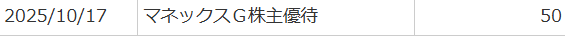 | 優待内容 | マネックスポイント(1pt=1円相当) |