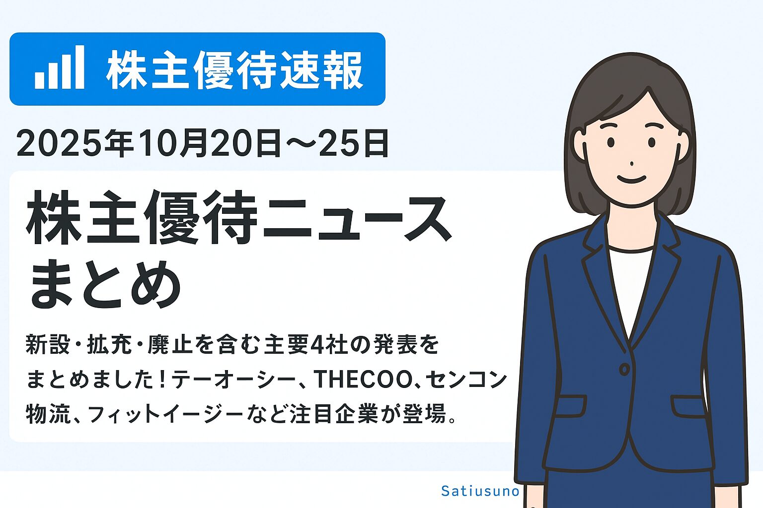10月20日~25日に発表された株主優待関連のニュースをまとめました📊✨