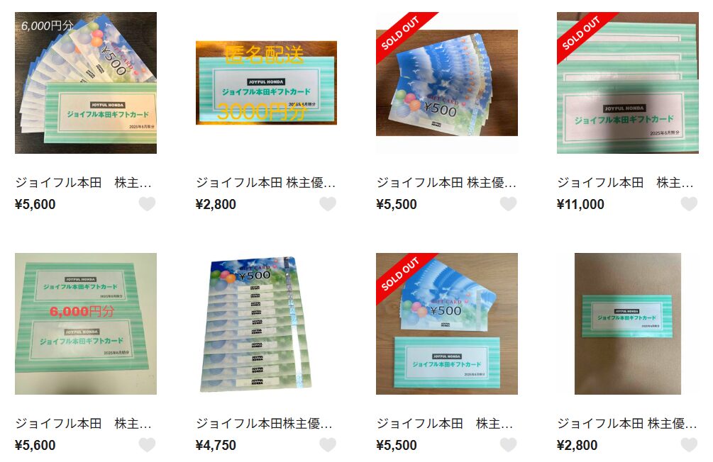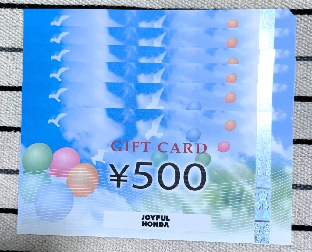 - 自社商品券(ギフトカード)は、ジョイフル本田グループの店舗で使用可能(ただしガソリンスタンド・灯油スタンドでは使えない場合があります)