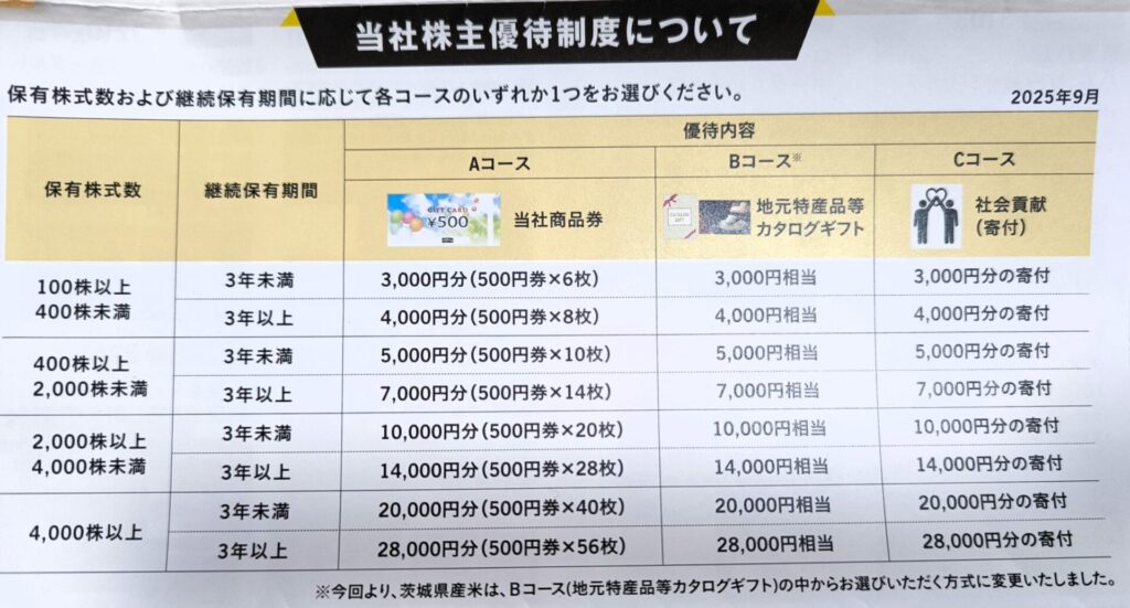 保有期間が3年以上になると、優待金額が増えるのも嬉しいポイントです✨