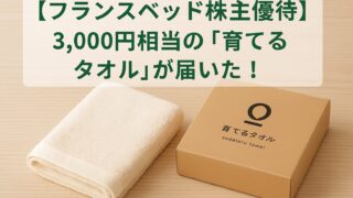 3月優待 【フランスベッド株主優待】3000円相当の「育てるタオル」が届いた!実際に使って感じた魅力と注意点 フランスベッドホールディングス(7840)の株主優待が到着!200株以上で「育てるタオル」など選べるギフトがもらえます。実際に届いたコースAのタオルの使い心地や、優待を上手に活用するポイントを詳しく紹介します。 2025.11.18 3月優待株主優待