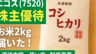 2月優待 【エコス(7520)株主優待】お米2kgが届いた!🍚 内容・制度変更ポイントまとめ エコス(7520)の株主優待でお米2kgが到着!100株から選べる優待内容、優待券の使い方、発送時期、さらに2026年からの制度変更ポイントまでわかりやすく解説します。 2025.11.27 2月優待8月優待株主優待